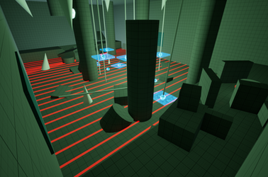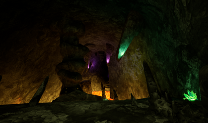 I used the UE5 tools to greyblock out the level initially and test gameplay, then used Blender to 3D model a smoother cavelike mesh, dividing it into sections which can be turned off for level optimization. I use a lot of different lights, decals and crystals in the level to guide the players down in the golden path, while also having a good amount of collectibles for the explorers. I designed the triggerable platforms and laser turrets for this level to add intensity in a location where combat is limited.
